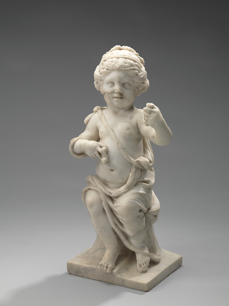 Wellicht één der drie kinderfiguren die een portret van Johan Maurits van Nassau-Siegen hebben geflankeerd, die van 1665 tot 1669 in de tuin van het Mauritshuis hebben gestaan.