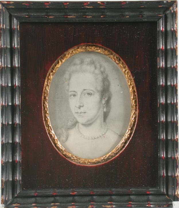 - etiket achterzijde lijst: ALBUM BACKER NO 77/ Ten GROOTENHUIJS/ Anna Catharina/Jan´s dr ex/Witheijn Elisabeth 1670-1740/ x71687/BACKER JAN no 20./: wit etiket met tekst in het zwart