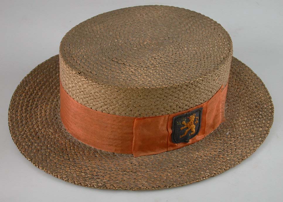 Ronde strooien hoed in lage cilindervorm en met platte rand.- Trefwoorden