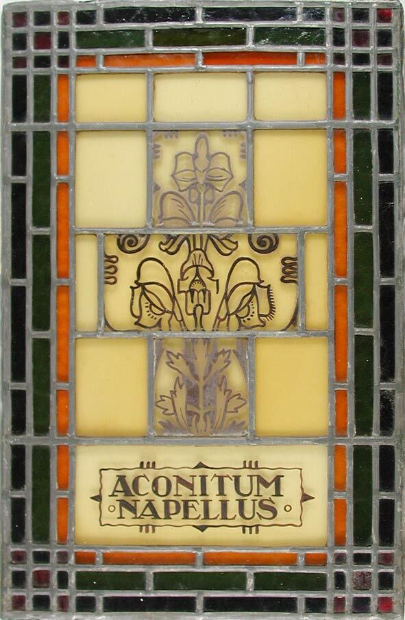 - Bovenlicht van voormalige apotheek Schrijnen, 'Aconitum Napellus'