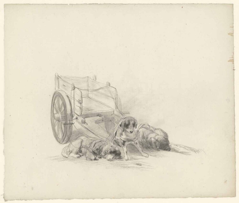 - Drie rustende trekhonden voor kar, 1800 - 1899