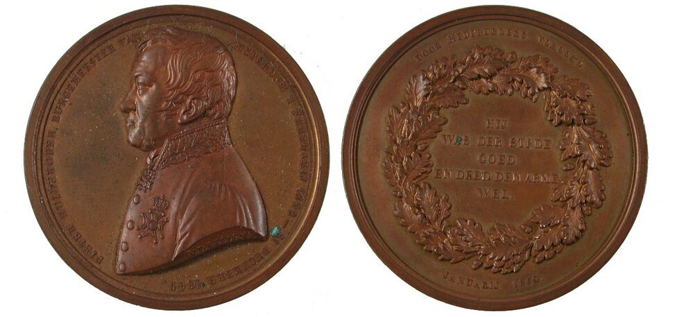 omschrift voorzijde: PIETER HUIDEKOPER, BURGEMEESTER VAN AMSTERDAM 1 FEBRUARIJ 1842 - 31 DECEMBER 1849