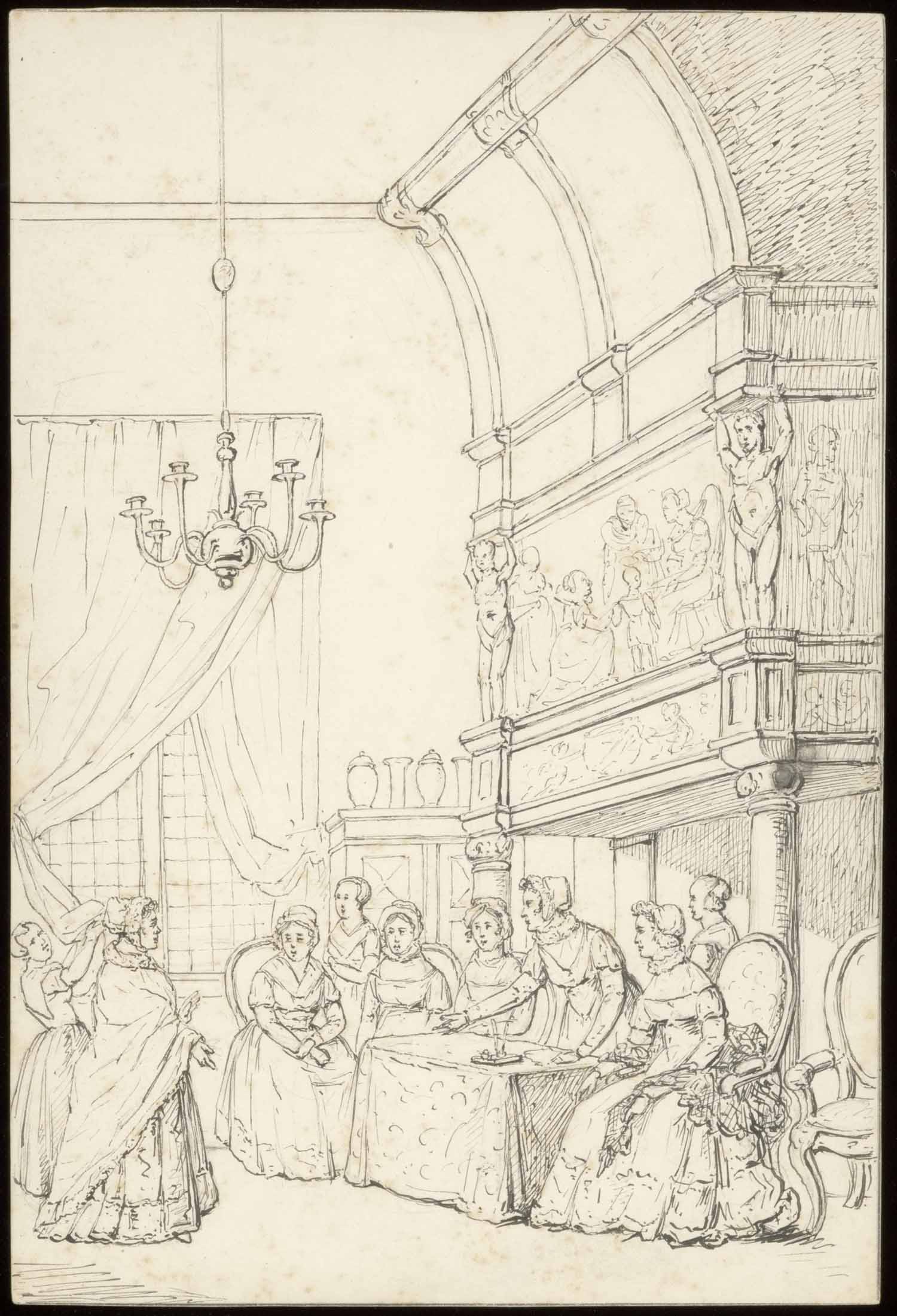 - 1814, entree van mevrouw Wurfbain-Hurrelbrinck als regentes in het Luthers Evangelisch Weeshuis, 1843