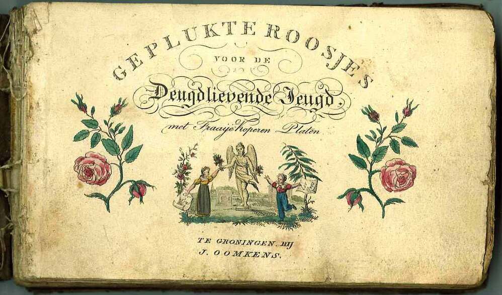Illustraties van kopergravures komen in oude kinderboeken niet zo vaak voor. Meestal zijn het houtsneden, houtgravures of lithografieën. In dit oblong boek met 136 pagina's zijn 8 platen opgenomen die heel zorgvuldig zijn ingekleurd. Het bevat verhalen, gedichten en samenspraken met titels als: Morgenlied van een negerslaaf, De schreijende moeder, De geboorte bepaalt ons volgend geluk niet, Karel Moorman of Geluk uit rampspoed geboren. De onderwerpen zijn divers: slavernij, de wreedheid der Turken, tuinieren, vaderlandsliefde, deugden, kortom: een staalkaart van toenmalige normen en waarden. (Koninklijke Bibliotheek)