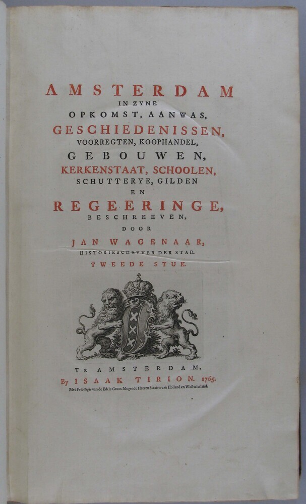 - Amsterdam in zyne opkomst, aanwas, geschiedenissen [...] : tweede stuk. Amsterdam, Isaak Tirion, 1765, 1765