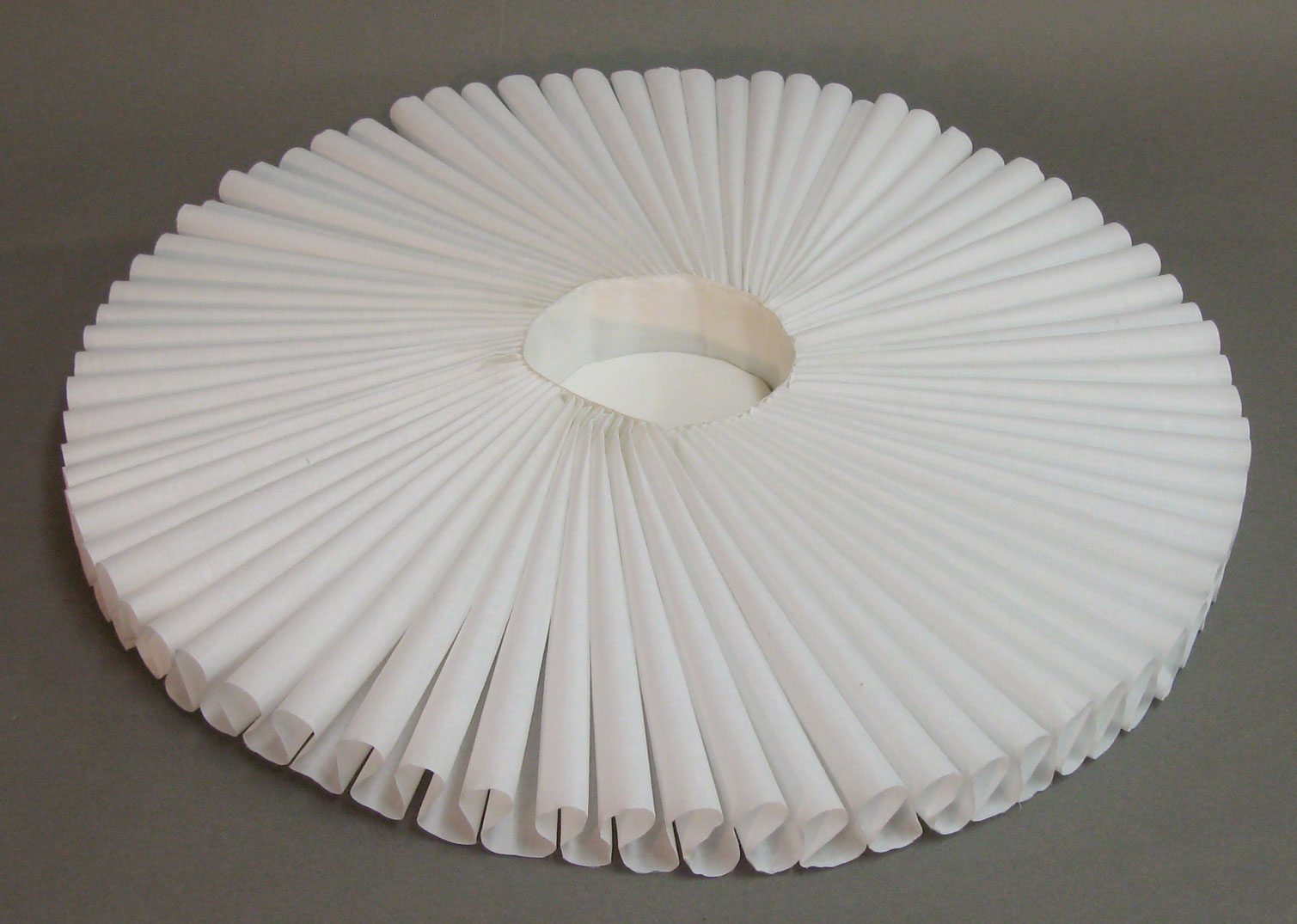 Deze kraag is een replica van een molensteenkraag, populair in de late 16de - en het eerste kwart van de 17de eeuw. Er bestond een grote variatie in vorm van de plooien en dikte van de kragen.