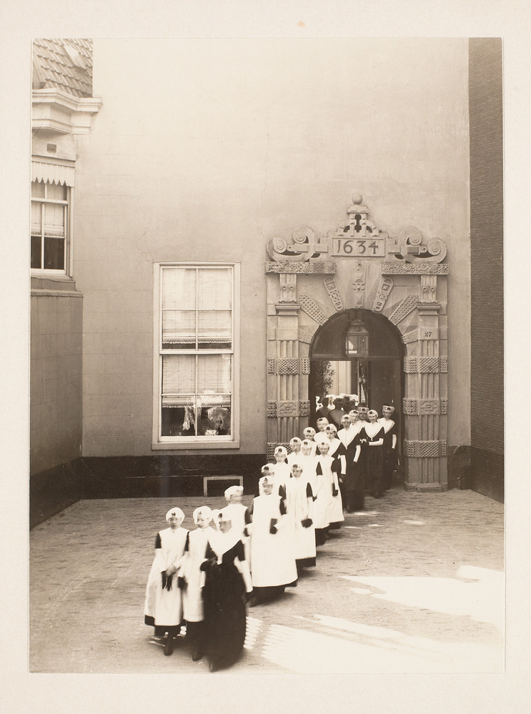 - Burgerweeshuis, kerkgang door meisjespoort, 1904
