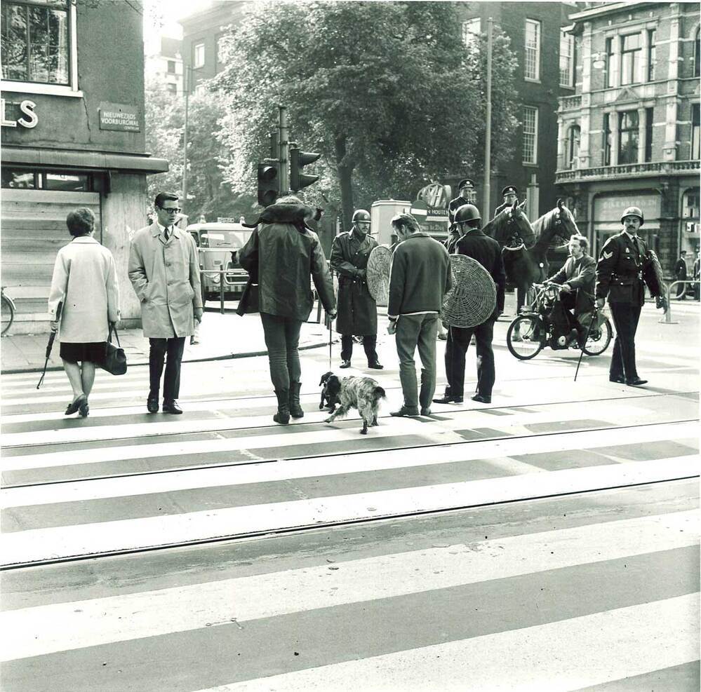 Maagdenhuisbezetting: Spui, mei 1969, 1969 Amsterdam papier hoogte a: 45.4 cm; breedte a: 33.4 cm; hoogte c: 28.3 cm; breedte c: 28.7 cm; titel/datering/signatuur achterzijde: Maagdenhuisbezetting/ mei 1969/ Spui./ c PAUL VAN RIEL