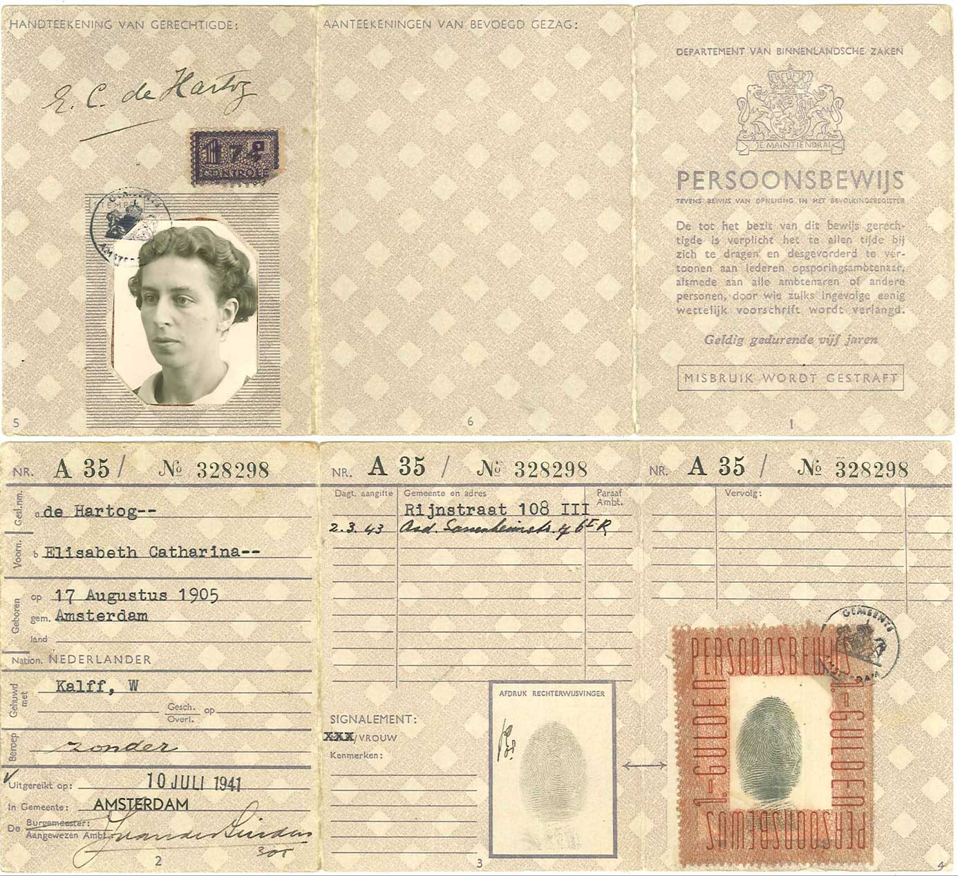 - Vals persoonsbewijs van Els Kalff-de Hartog, 1941