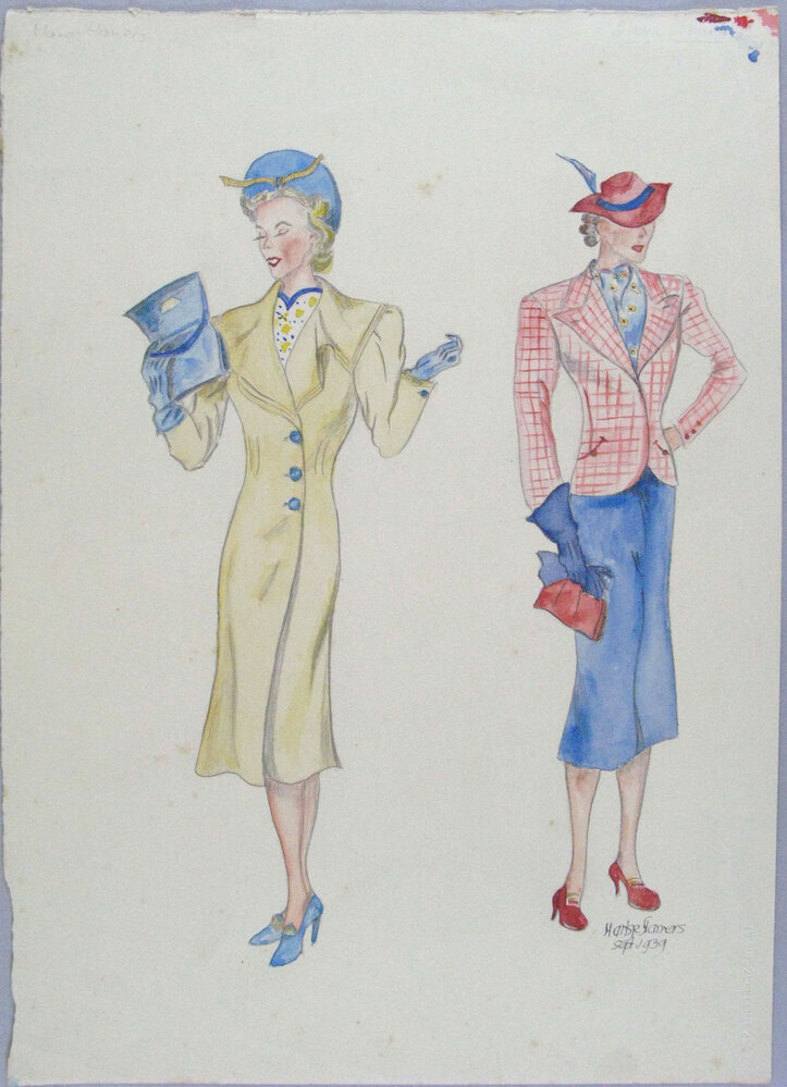 Modetekening gemaakt aan Industrieschool voor vrouwelijke Jeugd De Schans