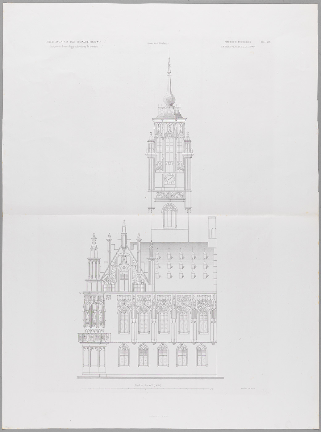 - Prent van de gevel van het stadhuis te Middelburg, 1859