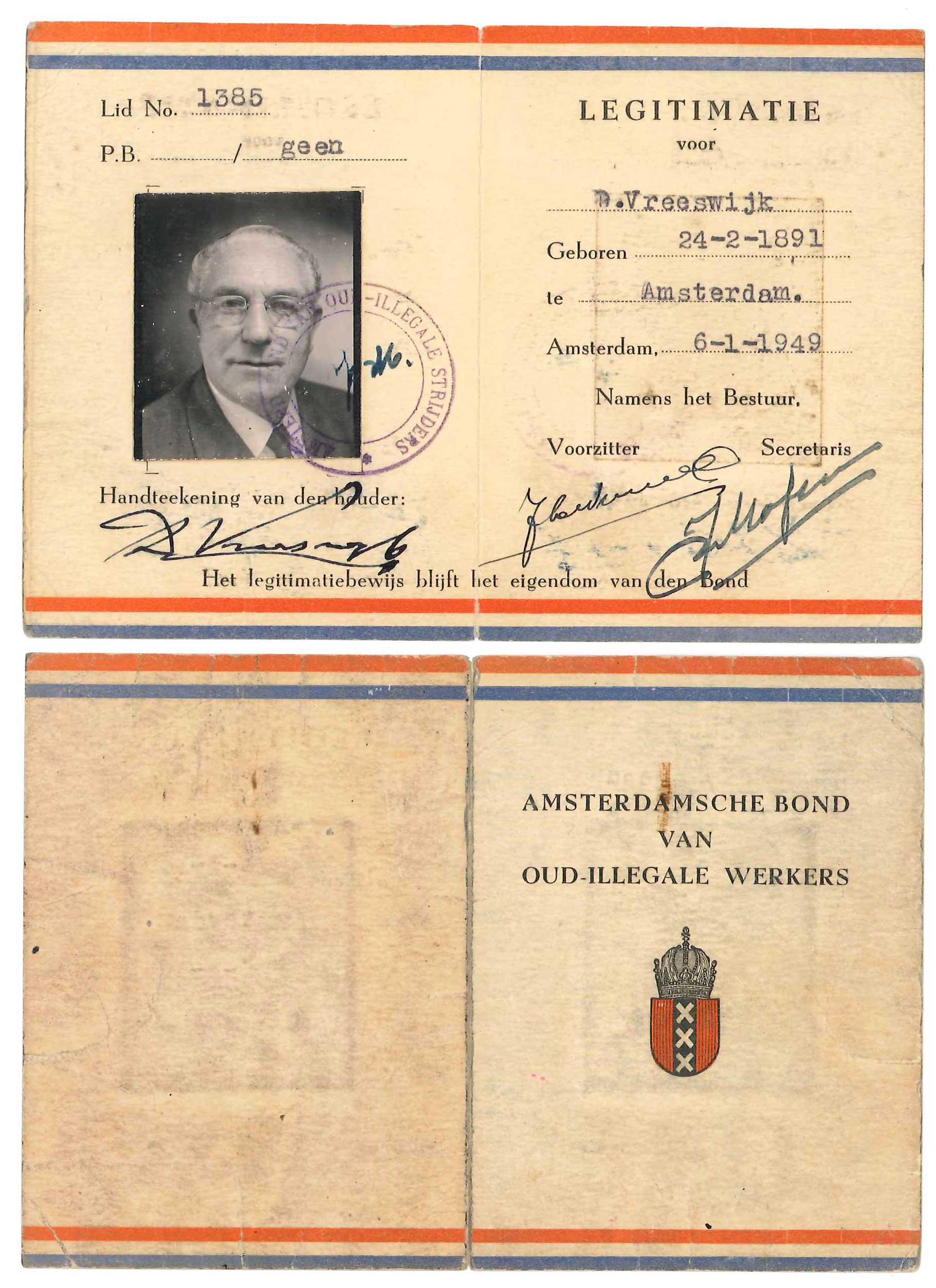 - Legitimatiebewijs van Dirk Vreeswijk, 1949