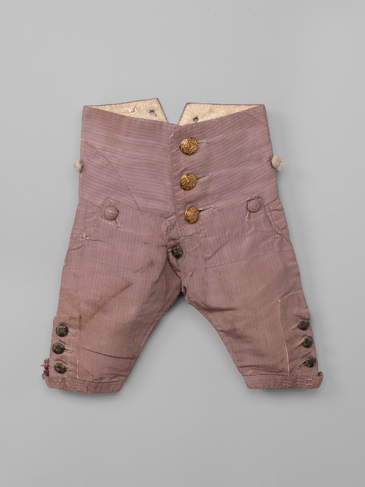 Dit jongenspakje uit de tweede helft van de achttiende eeuw - voor een ongeveer vierjarige - is een kopie van de kleding van volwassen mannen. Kinderen werden gekleed als miniatuurvolwassenen. Mede onder invloed van het gedachtegoed van filosofen als Jean-Jacques Rousseau (1712-1778) kwam daar in de late achttiende eeuw verandering in, althans in de hogere kringen. Toen pas werd een kind gezien als onschuldig individu met een geheel eigen, te respecteren leefwereld. Het duurde tot de late negentiende eeuw tot deze nieuwe ideeën gemeengoed werden bij een breder publiek.