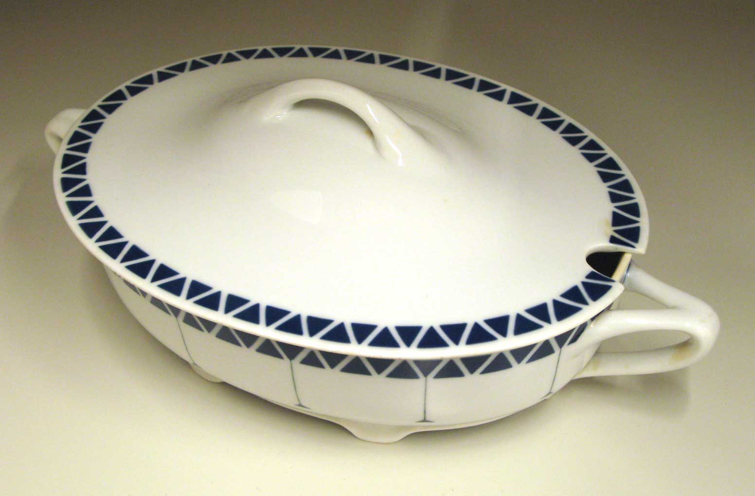 Dit serviesonderdeel komt uit het bezit van de Amsterdamse architect Abraham Salm (1857-1915). Samen met zijn vader Gerlof Bartholomeus Salm (1831-1897) heeft Abraham een grote bijdrage geleverd aan de stedenbouwkundige veranderingen in Amsterdam in de tweede helft van de negentiende eeuw. Waar G.B. Salms naam onlosmakelijk verbonden is met de bouw van Artis in de Plantage, staat zoon Abraham vooral bekend om zijn herenhuizen, stadsvilla’s, (sigaren)fabrieken en paardentramremises, aanvankelijk in classicistische, later in meer historiserende eclectische stijl. Daarnaast ontwierp hij ook interieuronderdelen. Dit 28-delige servies is afkomstig uit het door A. Salm ontworpen huis aan de Weesperzijde 26, waar hij zelf woonde en werkte. Salm heeft het servies aan het begin van de 20ste eeuw gekocht op de Wereldtentoonstelling in Duitsland. ( Sarah Remmerts de Vries)