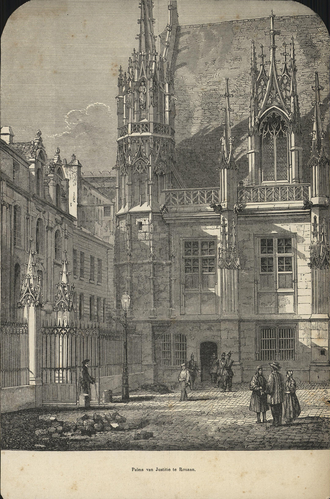 - opschrift midden onder afbeelding: Paleis van Justitie te Rouaan