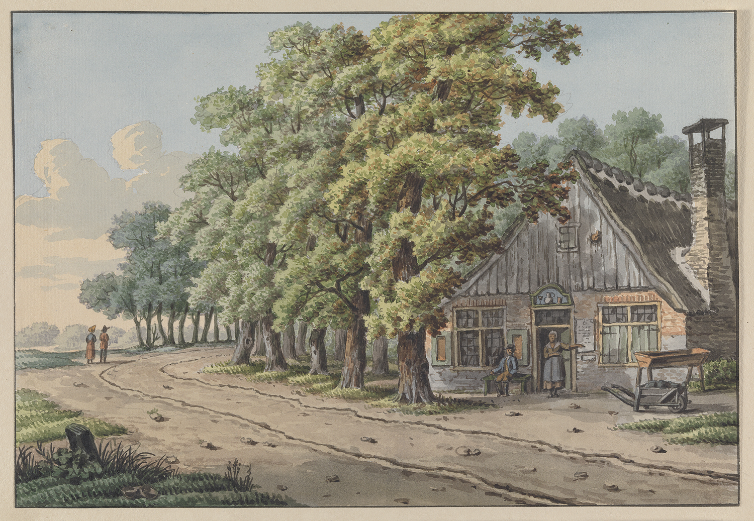 Deze aquarel is onderdeel van een schenking van dertig landschapstekeningen, bestaande uit gezichten op zowel de omgeving van Amsterdam, als op dorpjes en landschappen in het oosten van Nederland. Deze serie geeft een interessante blik op het leven in landelijke gebieden rond 1800. De aquarellen zijn toegeschreven aan prentmaker en tekenaar Anthonie van den Bosch (1763-1838) op basis van stijl en omdat een aantal van de aquarellen een opvallend verband hebben met het (gesigneerde) prentwerk van deze kunstenaar. In die prenten komen dezelfde onderwerpen en in enkele gevallen zelfs dezelfde composities voor. ( Sarah en Molen Remmerts de Vries, Tom van der)