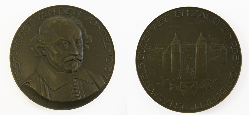 opschrift voorzijde: 1587 - JOOST VAN DEN VONDEL - 1937