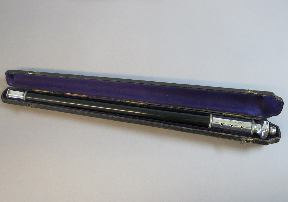 - Dirigeerstok met stemfluit, in etui, aangeboden door leden der Nationale Zangschool van het Amstels Mannenkoor, afdeling Vrouwen en Meisjes, aan directeur Bern. J. Beumer, 1881