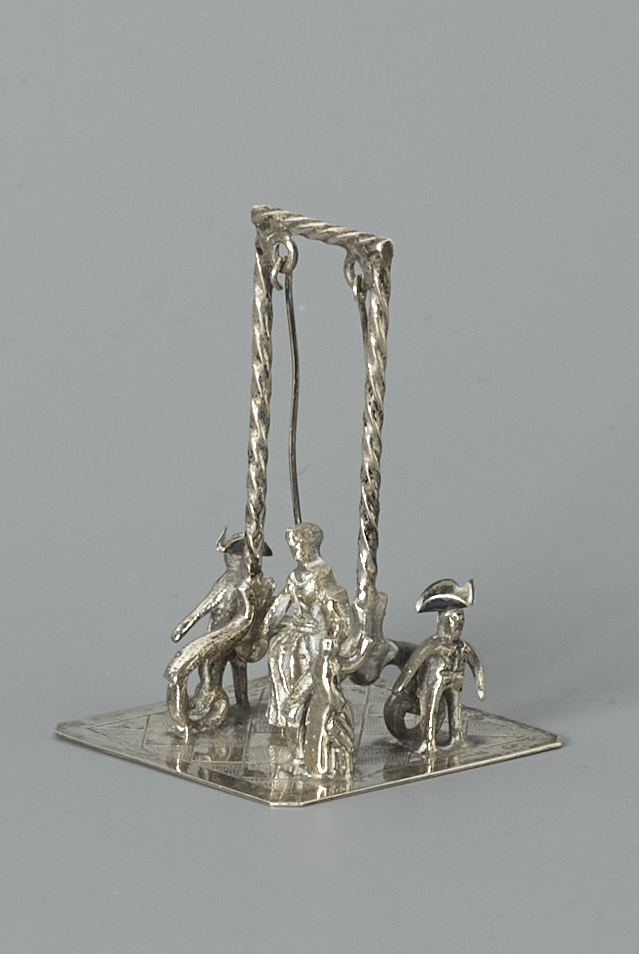 Dame op schommel met twee mannelijke toeschouwers en kind- Trefwoorden