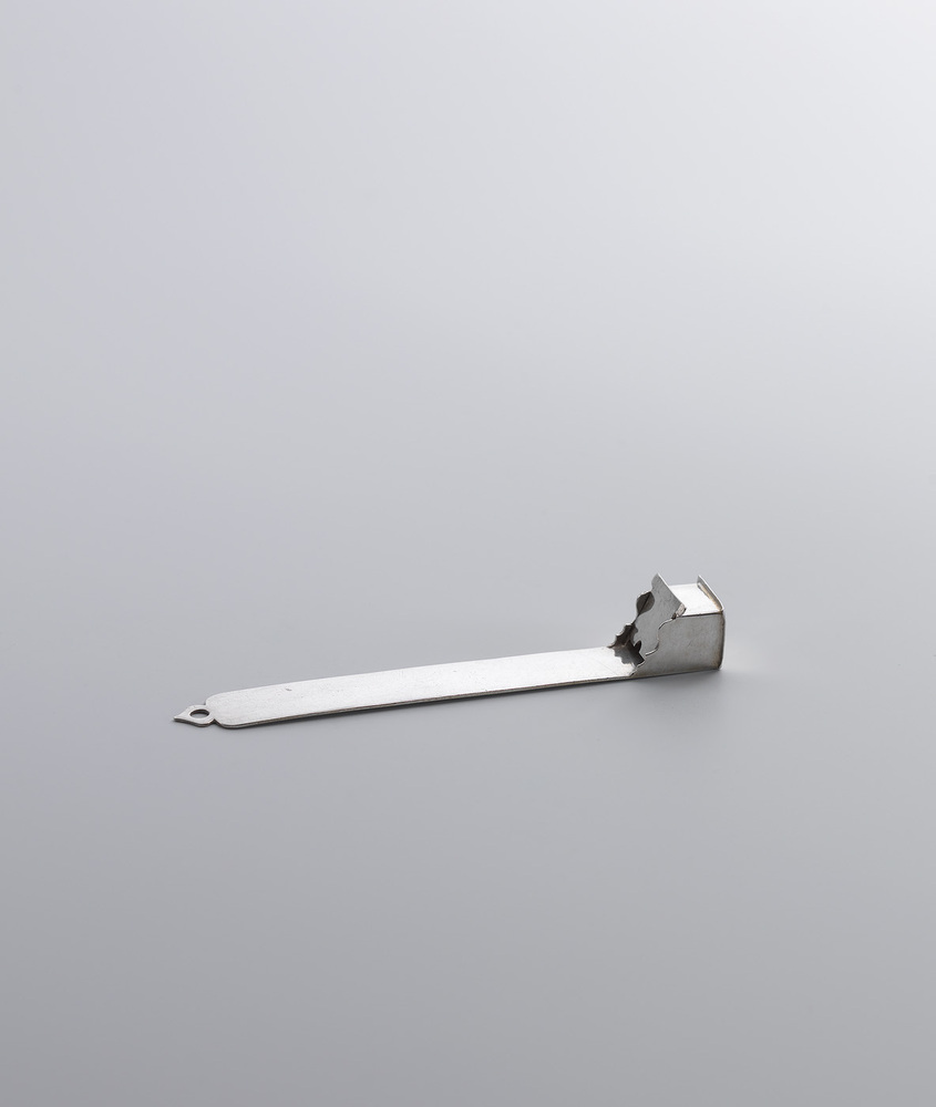Geen keuken of bijkeuken of er hing vroeger een slijpplank. Met behulp van zand of een ander slijpmateriaal werden daar messen op geslepen. De plank was altijd langwerpig van vorm en vervaardigd van een harde houtsoort, veelal eiken. Aan de onderkant bevond zich een bakje met deksel waarin het fijne slijpzand werd bewaard. Dit zilveren exemplaar geeft het echte voorwerp tot in detail weer, inclusief bakje en ophangoog. ( Bert Vreeken)