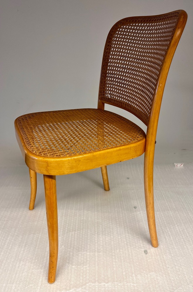 Beukenhouten zitstoel in Thonet-stijl met rotan zitting.- Trefwoorden