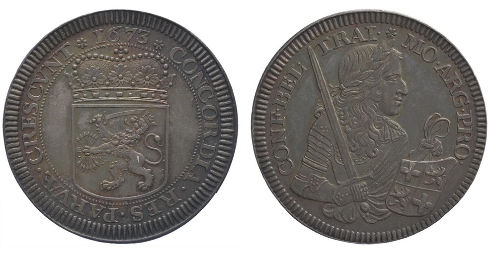 - 1673, rijksdaalder met borstbeeld van Willem III (proef), 1673