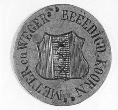 - Korenmeter en -weger, draagteken van een kaarnmeter en weger,
