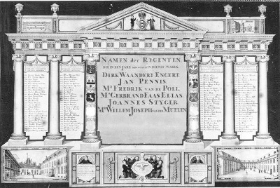 Naamlijst van regenten (Cornelis Jacobus Bas- Fred van de Poll), 1818 glas, perkament, leer (materiaal), hout hoogte: 84 cm; breedte: 118 cm; bruikleen 1962-11-09 inv.nr. KB 779 in depot