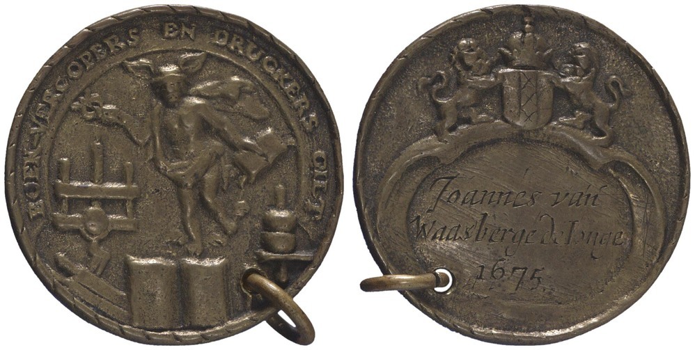 omschrift voorzijde: BOEK-VERCOPERS EN DRUCKERS GILT