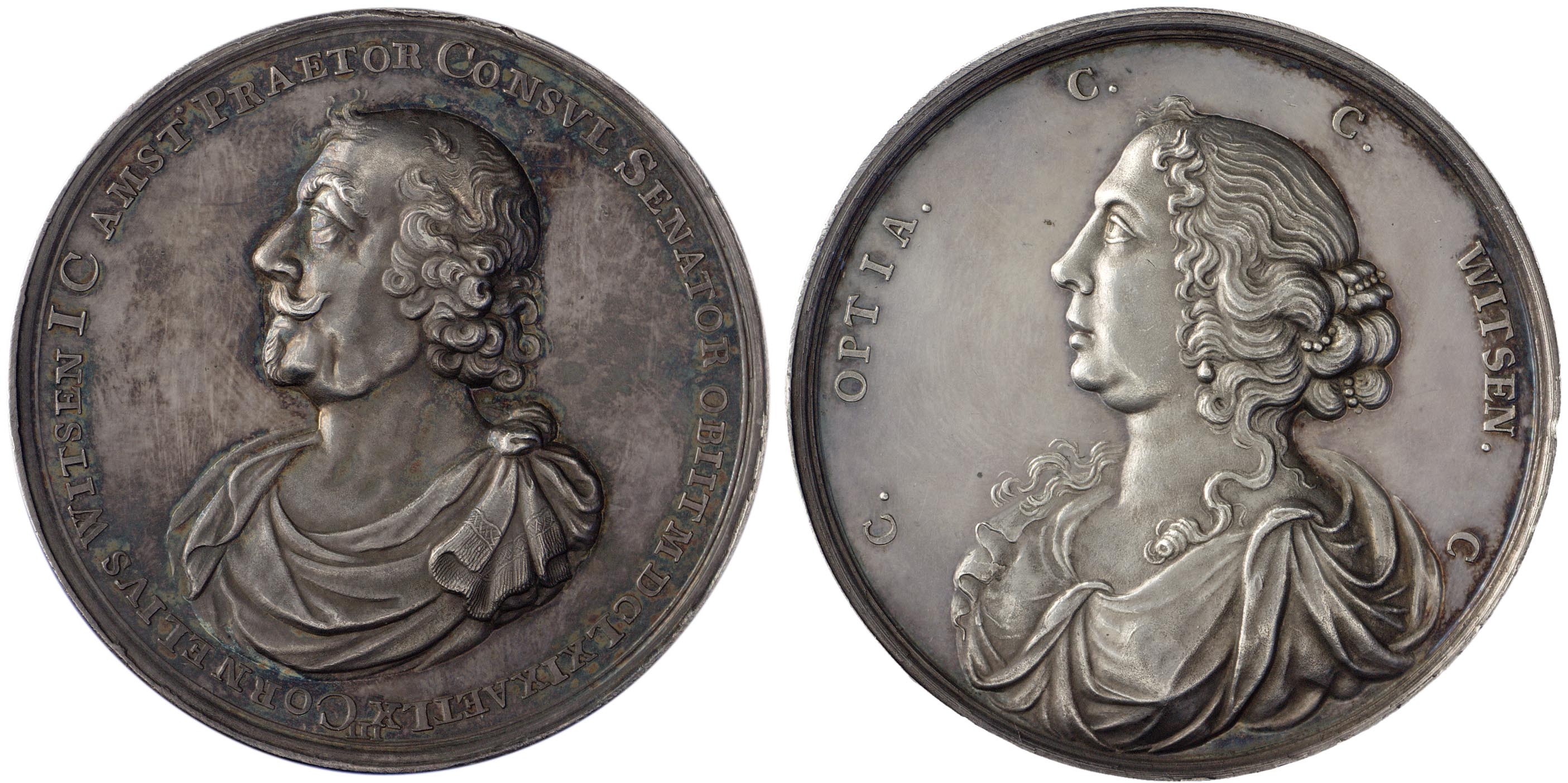 De Amsterdamse burgemeester Cornelis Witsen (1605-1669) was een groot verzamelaar van penningen die in acht kabinetten waren opgeborgen. Van zijn rariteiten en numismatische verzameling werd in 1677 een catalogus gemaakt waarin de penningen maar liefst 138 pagina’s beslaan. De collectie werd in zijn geheel door zijn echtgenote Catharina Opsy (1619-1698) voor 30.000 gulden verkocht.