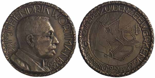 omschrift keerzijde: DIRECTEUR GENERAAL DER ZUIDERZEEWERKEN / 1919 / 1 MEI / 1929