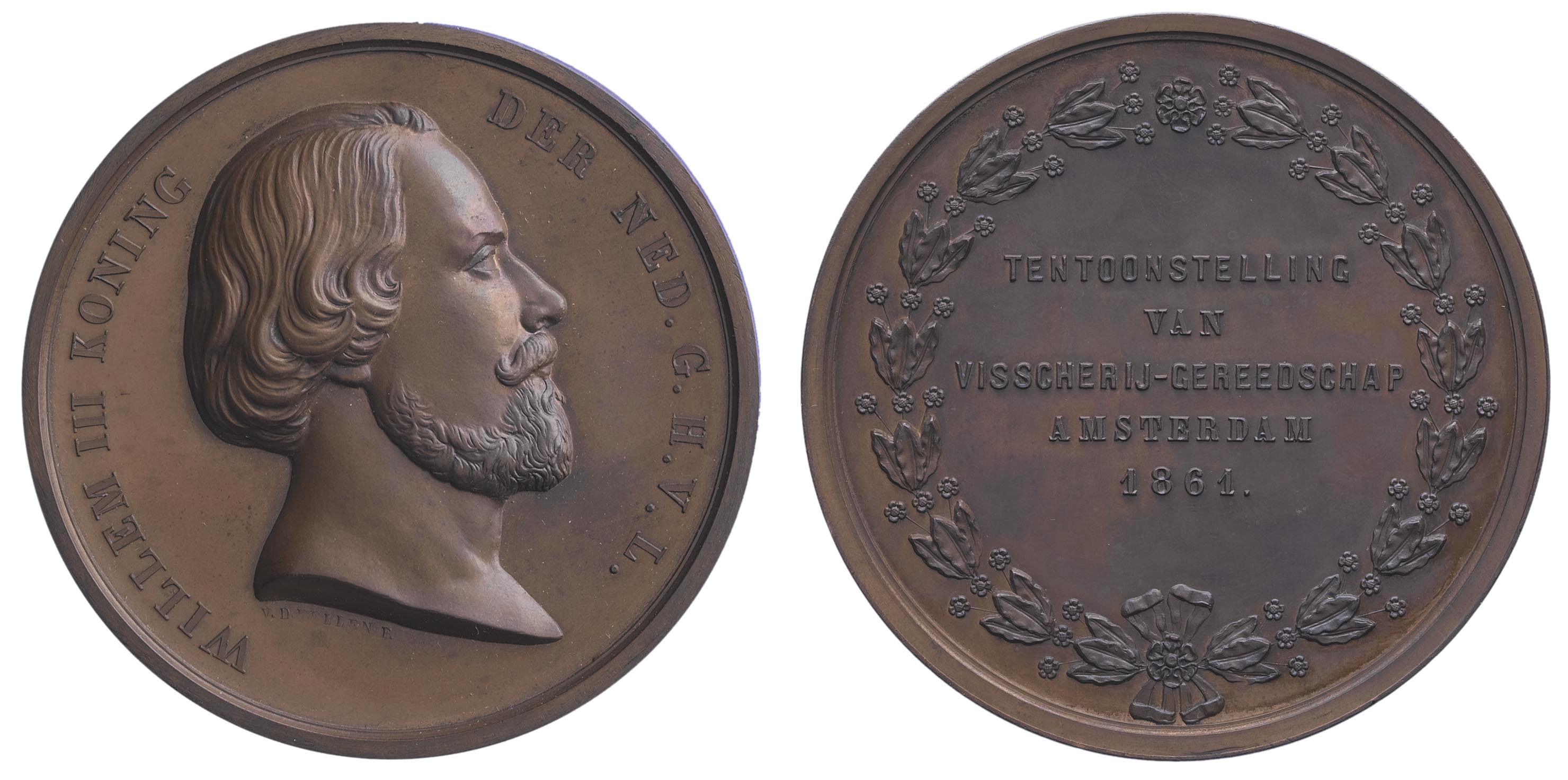 opschrift keerzijde: TENTOONSTELLING / VAN / VISSCHERIJ-GEREEDSCHAP / 1861.