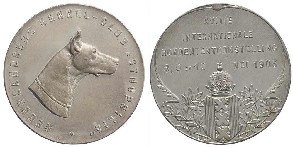 omschrift voorzijde: NEDERLANDSCHE KENNEL-CLUB "CYNOPHILIA"