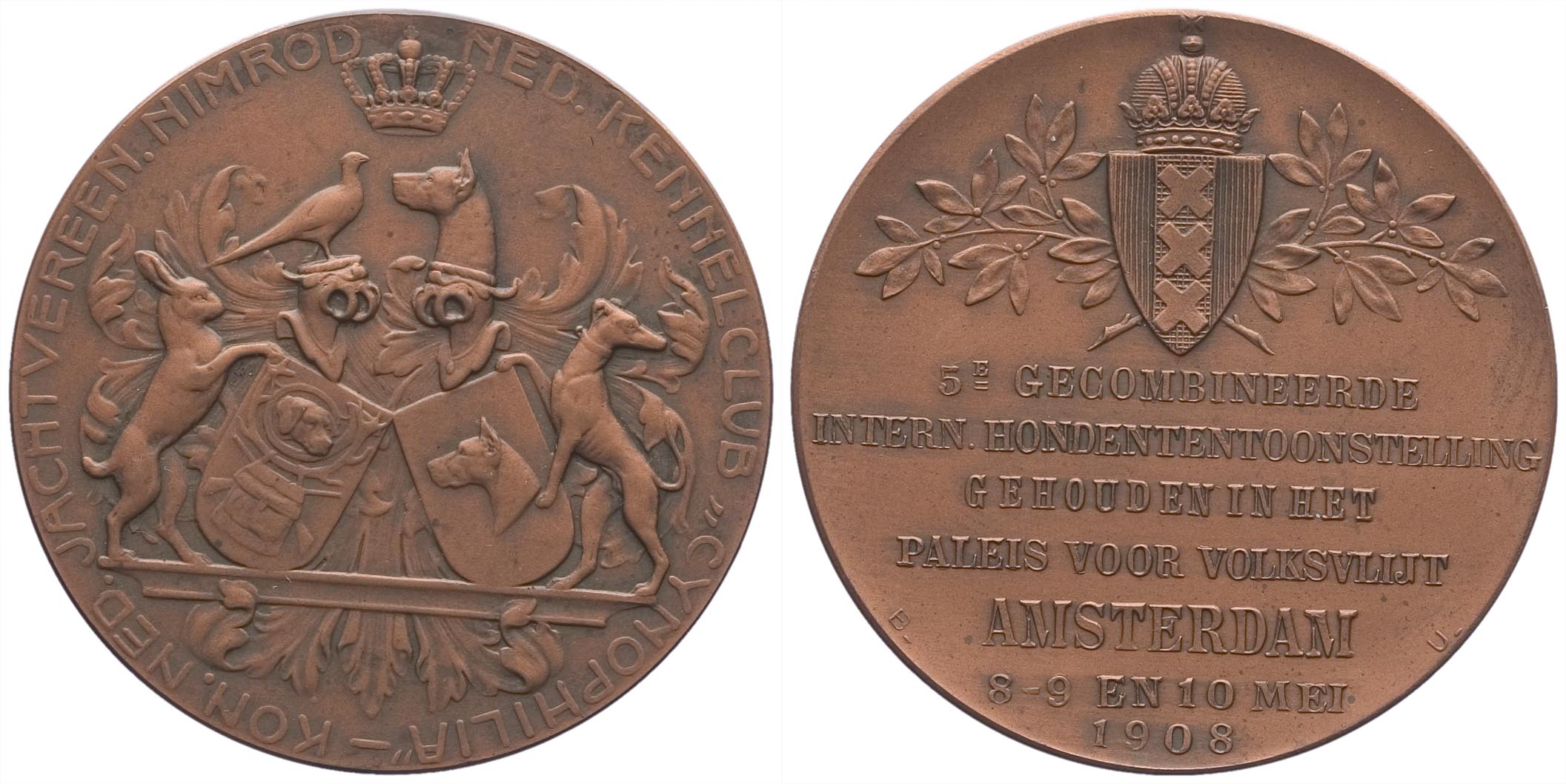 omschrift voorzijde: NED. KENNELCLUB "CYNOPHILIA"- KON. NED. JACHTVEREEN. NIMROD