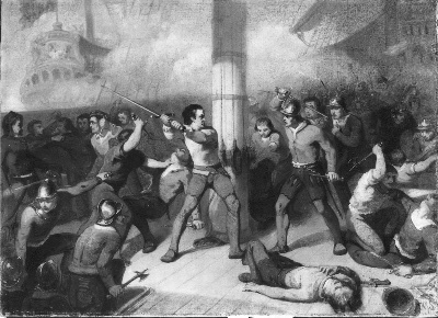 Tijdens de oorlog die in 1536 tussen keizer Karel V en koning Frans I van Frankrijk was uitgebroken, namen de Fransen Hollandse koopvaarders in beslag. Twee van hun oorlogsschepen kruisten voor de monden van de Maas en lieten geen vaartuig door. Er waren geen schepen om de Fransen te verdrijven, maar daar vond een Dordtse schipper iets op. Hij verborg een aantal gewapende mannen in een klein vaartuig en zeilde de Maas uit. Hij werd al spoedig geënterd door de Fransen, die dachten met een koopvaarder te maken te hebben. Na schijnbare tegenstand liet de Dordtse schipper de Fransen aan boord komen. Terwijl zij aan 't plunderen waren, sprongen de verborgen manschappen uit hun hinderlaag. Zij sloegen de overweldigers dood, namen zonder moeite de twee Franse schepen in en brachten deze in zegepraal naar Dordrecht op. ( Dedalo G. Carasso)