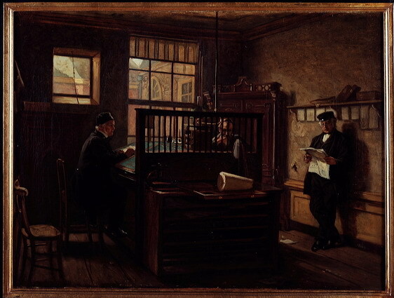 - Interieur van het kantoor der suikerraffinaderij Spakler en Tetterode aan de Lijnbaansgracht, 1869