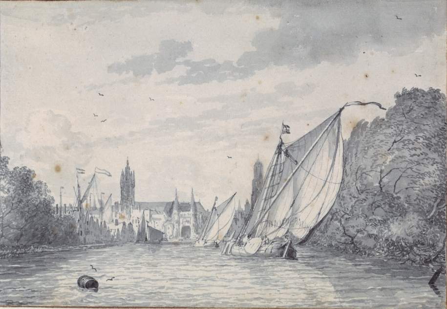 Veiling Willink 1819, p. 21, Kunstboek H, nr. 11: 'Twee stuks woelende Binnenwateren, zijnde een Gezigt op het Haarlemmermeer en op Delft; meesterlijk met o.i. inkt, door L. Bakhuizen' (f 40,- , aan de Vries); Collectie C.J. Fodor, legaat 1860