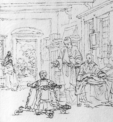 Voorstudie voor prent 6 uit de emblematabundel "Des menschen begin, midden en eynde" door Jan Luyken- Trefwoorden
