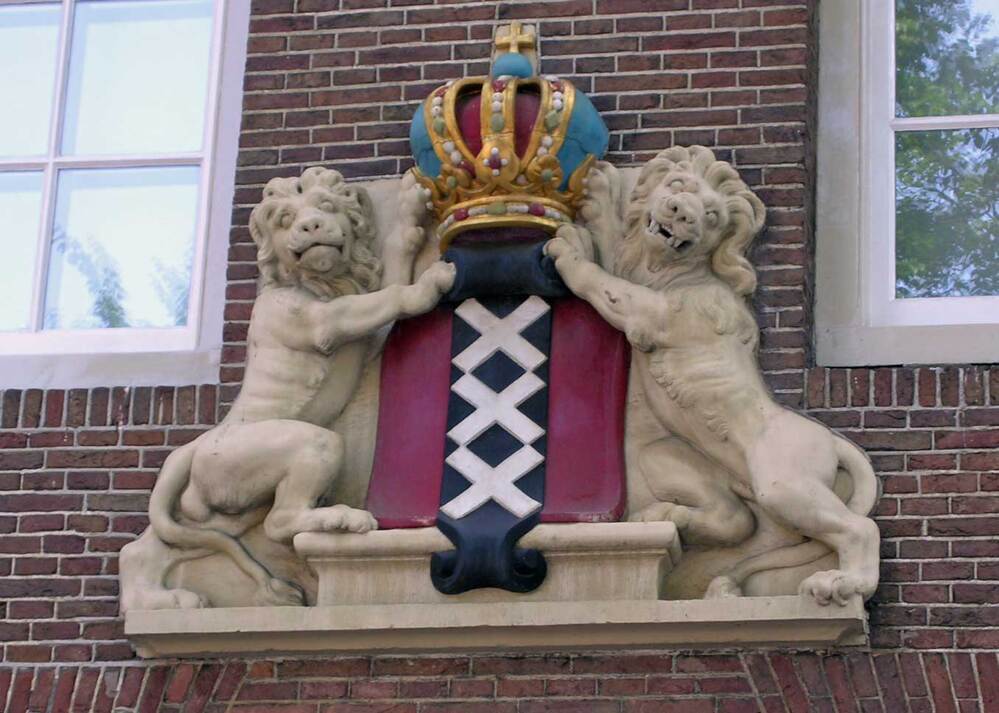 In de westelijke gevel van het voormalige Burgerweeshuis aan de Nieuwezijds Voorburgwal bevindt zich deze gevelsteen met het gekroonde stadswapen van Amsterdam. De steen is in 1681 gehouwen door beeldhouwer Bartholomeus Eggers, die er destijds 150 gulden voor betaald kreeg. Eggers werkte onder meer mee aan de decoratie van het stadhuis (het huidige Paleis) op de Dam, onder leiding van Artus Quellinus. Deze gevelsteen maakte onderdeel uit van de laat zeventiende-eeuwse verbouwing van het Meisjesvleugel van het Burgerweeshuis. ( Sarah Remmerts de Vries)