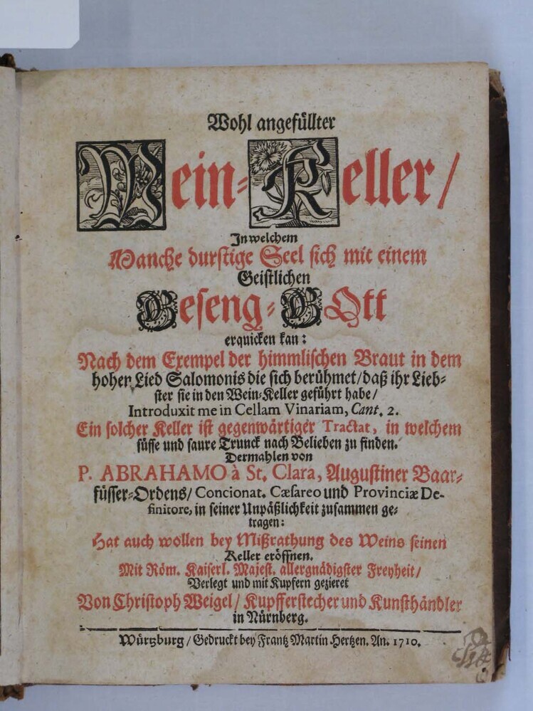 - Wohl angefüllter Wein-Keller. Nürnberg, Christoph Weigel, 1710, 1710