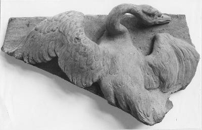 Schets voor het marmeren timpaan van de voorgevel van het 17de-eeuwse stadhuis: de zeegoden brengen hulde aan de Amsterdamse stedemaagd, de groep uiterst links. In een ongedateerde lijst van voor 1806 (1802/03?) worden '14 Stuks Boedseersels uit het Frontespice van t Stadhuis' vermeld, zonder nadere omschrijving. Vermoedelijk in 1878 is de schets, met negen andere losse terracotta fragmenten van het timpaan van de voorgevel (door E. Collinet?) op een houten schot bevestigd. In het eerste kwart van de 20ste eeuw is dit ensemble gedemonteerd.