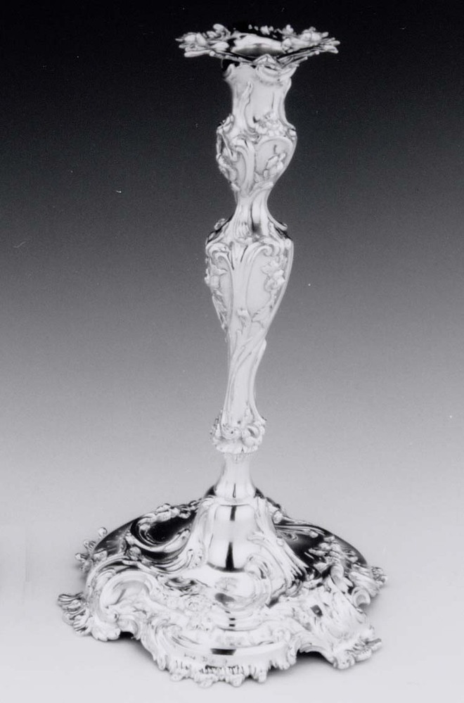 Natuurmotieven vormden een belangrijke inspiratiebron in de bewegelijke, asymmetrische rococo stijl. In de verschillende onderdelen van de kandelaar zijn schuimmotieven en voluten toegepast, evenals bloem- en bladertakjes. ( Bert Vreeken)