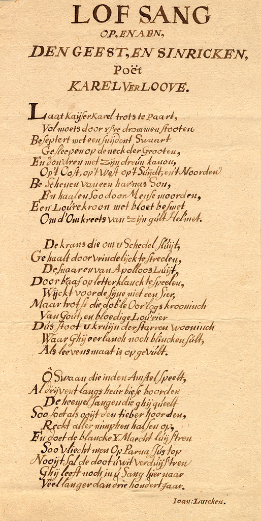 - Omslag met handgeschreven gedicht van Jan Luyken op Karel Verloove, 1661 - 1671
