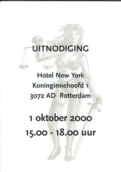 - Uitnodiging voor landelijke bijeenkomst in Rotterdam i.v.m. opheffing algemeen bordeelverbod, 1 oktober 2000, 2000