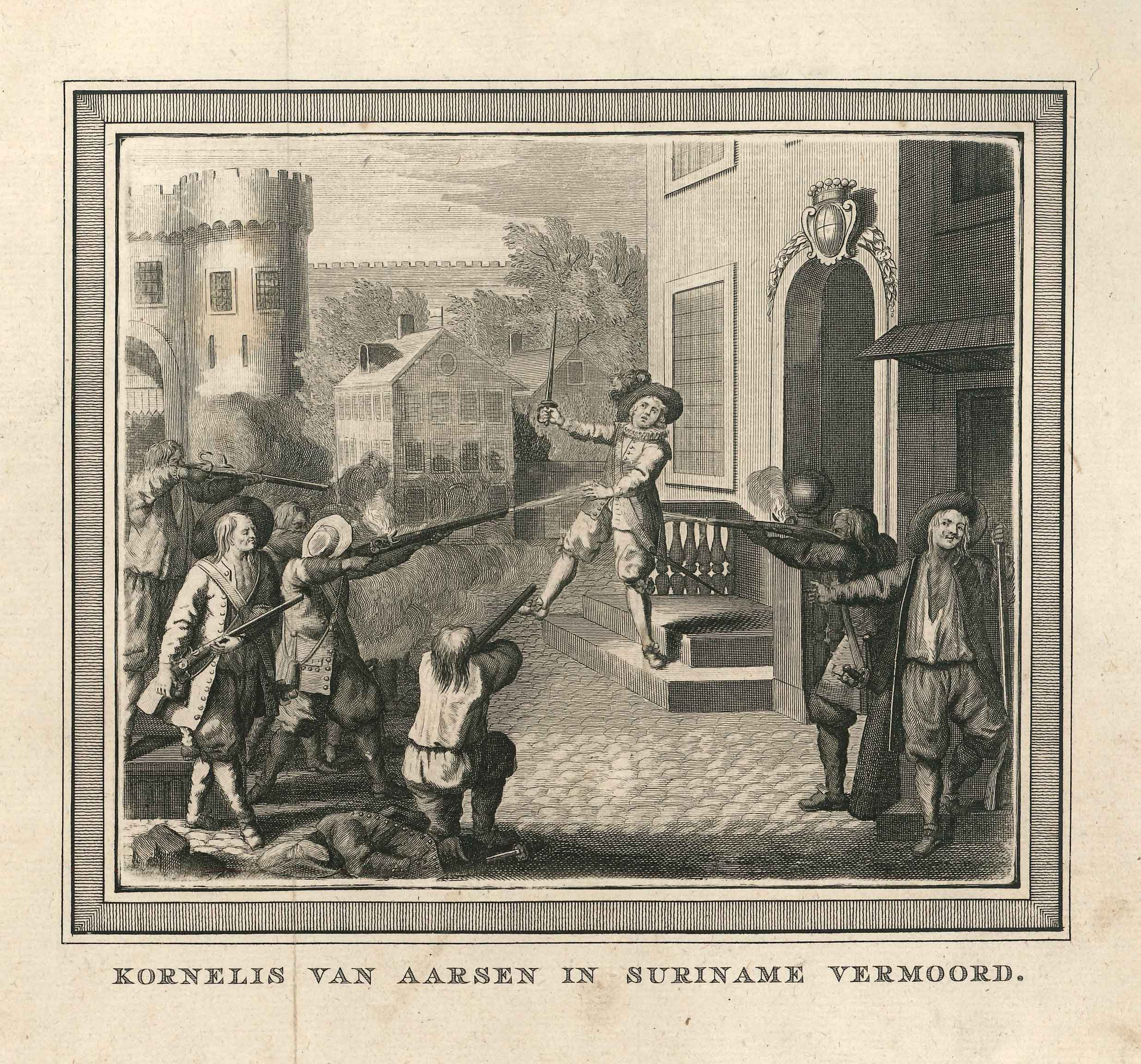 In 1683 wordt de Sociëteit van Suriname opgericht. Amsterdam wordt daarmee voor eenderde eigenaar van de kolonie Suriname. De andere twee eigenaars zijn de West-Indische Compagnie en de steenrijke familie Van Aerssen van Sommelsdijck. De stad en de WIC zorgen voor de financiën, administratie, schepen en de aanvoer van slaven. Cornelis van Aerssen van Sommelsdijck wordt de eerste gouverneur van Suriname. Onder leiding van de Sociëteit groeit het aantal plantages van 50 in 1683 tot meer dan 400 in 1730. Suiker en koffie zijn de belangrijkste plantagegoederen. Cornelis is echter niet bij iedereen geliefd. Op 19 juli 1688 wordt hij benaderd door een aantal ontevreden dronken soldaten, die hem na een korte woordenwisseling doodschieten. Cornelis' belang in de Sociëteit gaat over op zijn weduwe en blijft tot het einde van de achttiende eeuw familiebezit. ( Sarah en Jong Remmerts de Vries, Paul de)