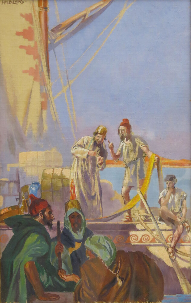 Omstreeks 1500 jaar voor Christus: De Phoeniciërs waren het eerste zeevarende volk dat een handelsmacht van betekenis is geweest (ontwerp voor publicatie 'Uit de geschiedenis van de wereldhandel'), 1937