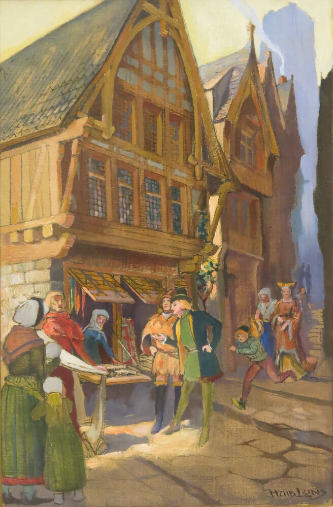 In 1937 gaf V&D een speciale kalender uit, ter gelegenheid van het vijftigjarig bestaan van de NV Amsterdamsche manufacturenhandel Vroom en Dreesmann. V&D was in 1887 te Amsterdam opgericht door de uit Veendam afkomstige Willem Vroom (1850-1925) en zijn zwager, de Duitse emigrant Anton Dreesmann (1854-1934). De kalender bestaat uit achttien platen, vervaardigd door kunstenaar Huib Luns, die samen op chronologische wijze de geschiedenis van de wereldhandel vertellen. De eerste plaat toont de tijd van jagers en verzamelaars, toen handel bestond in de vorm van ruil van levensbenodigdheden. De kalender eindigt met een plaat van een modern warenhuis van V&D, met deftige winkelaars en moderne leverancierswagens op de voorgrond. Op 31 december 2015 werd V&D failliet verklaard. ( Sarah Remmerts de Vries)
