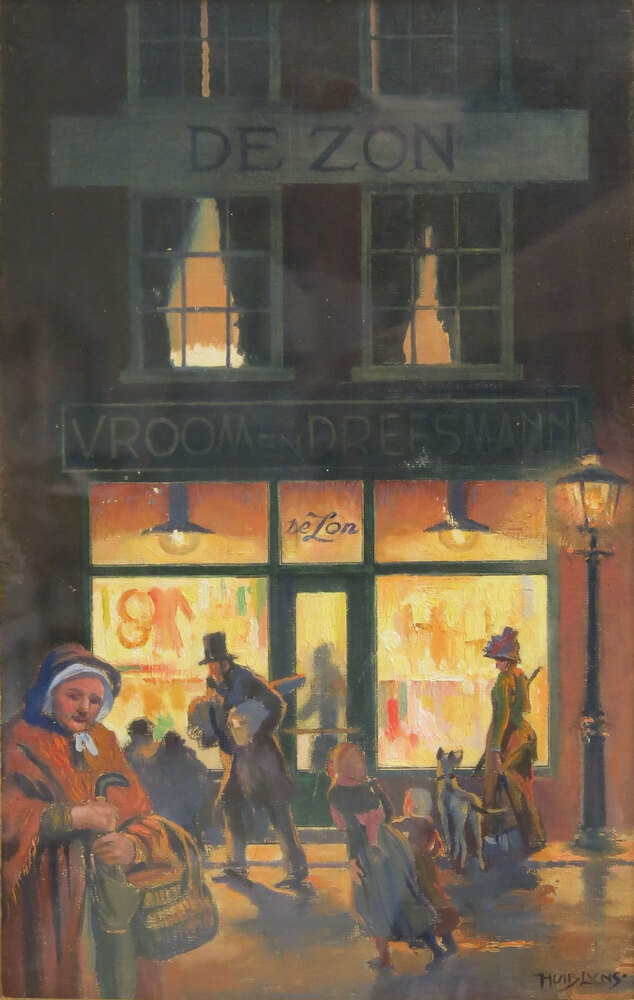In 1937 gaf V&D een speciale kalender uit, ter gelegenheid van het vijftigjarig bestaan van de NV Amsterdamsche manufacturenhandel Vroom en Dreesmann. V&D was in 1887 te Amsterdam opgericht door de uit Veendam afkomstige Willem Vroom (1850-1925) en zijn zwager, de Duitse emigrant Anton Dreesmann (1854-1934). De kalender bestaat uit achttien platen, vervaardigd door kunstenaar Huib Luns, die samen op chronologische wijze de geschiedenis van de wereldhandel vertellen. De eerste plaat toont de tijd van jagers en verzamelaars, toen handel bestond in de vorm van ruil van levensbenodigdheden. De kalender eindigt met een plaat van een modern warenhuis van V&D, met deftige winkelaars en moderne leverancierswagens op de voorgrond. Op 31 december 2015 werd V&D failliet verklaard. ( Sarah Remmerts de Vries)
