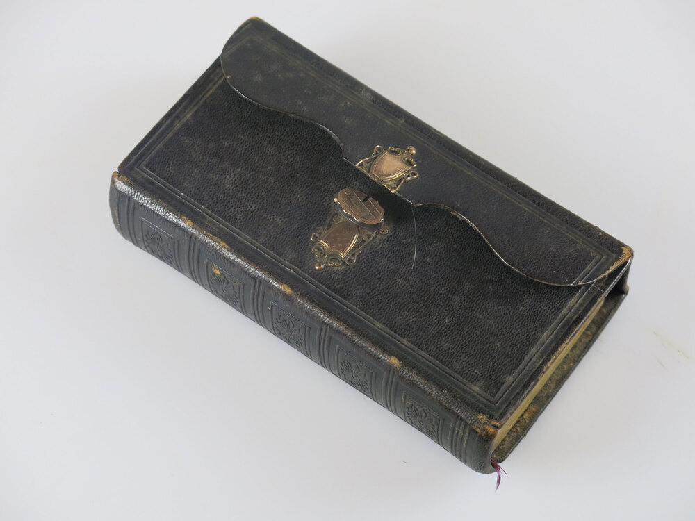 In het Amsterdamse Burgerweeshuis konden kinderen van Amsterdamse poorters (burgers met rechten om in de stad te wonen) terecht, die geen ouders of een moeilijke thuissituatie hadden. Het Burgerweeshuis was een protestantse instelling. Op zondag woonden de grote kinderen verplicht de kerkdienst bij, alleen de kleine kinderen bleven dan in het weeshuis achter. De meisjes boven de 14 jaar volgden de dienst in de Nieuwe Kerk, de meisjes tussen de 10 en 14 jaar en de oudere jongens in de Nieuwezijds Kapel – en later de Westerkerk. Ook kregen de weeskinderen godsdienstonderwijs van een hulppredikant, die speciaal daarvoor enkele malen per week het weeshuis bezocht. Deze zakbijbel, gebonden in leer en afgezet met koperen sluiting, werd aan het eind van de negentiende eeuw gebruikt in het Burgerweeshuis. ( Sarah Remmerts de Vries)