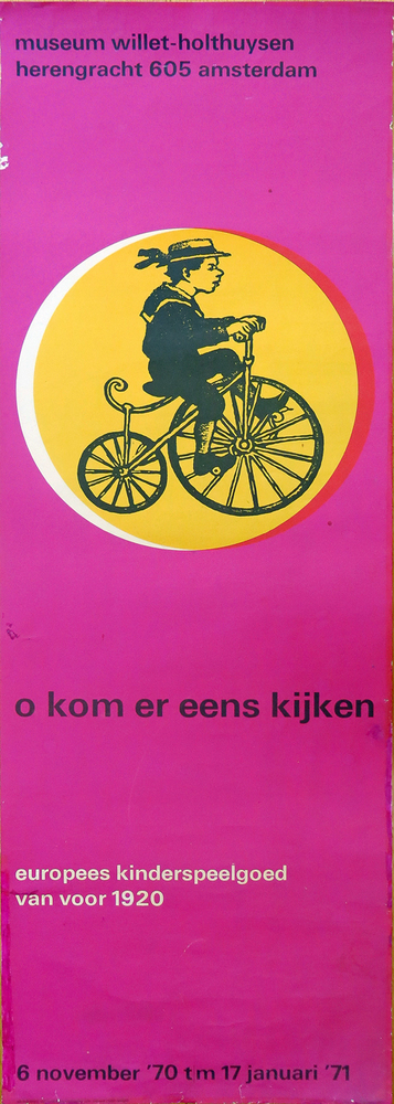 - Affiche tentoonstelling in Museum Willet-Holthuysen, 'O kom er eens kijken. Europees kinderspeelgoed van voor 1920', 6 november '70 t/m 17 januari '71, 1970